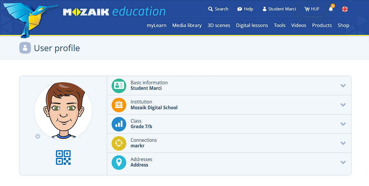Si has iniciado sesión en mozaWeb, haz clic en tu nombre (1) y elige Mi perfil (2) en el menú: