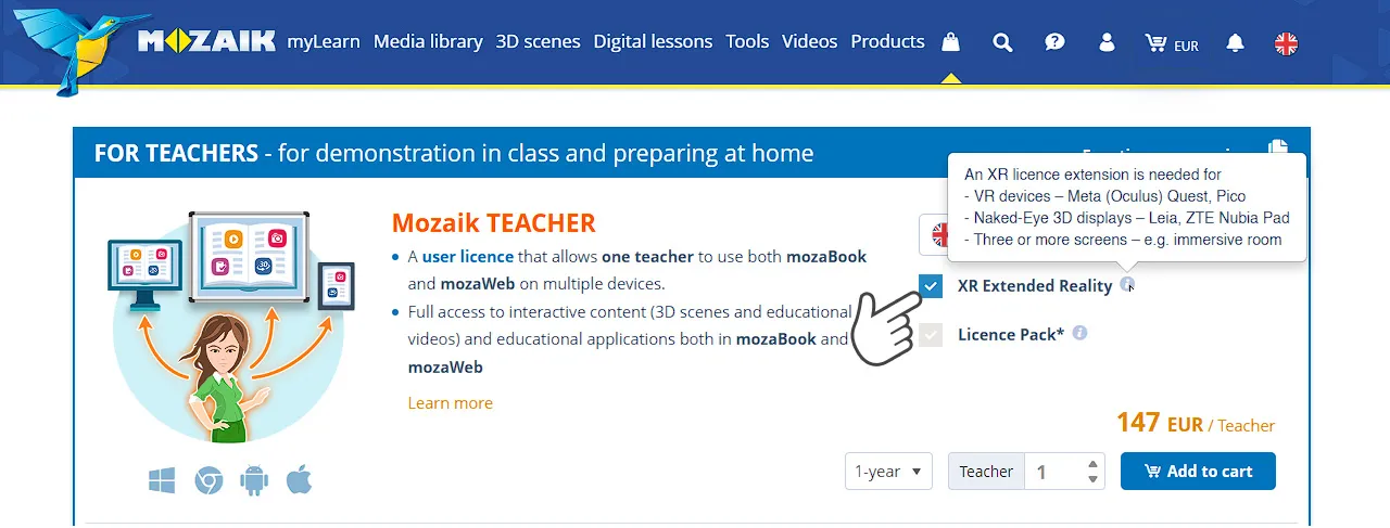 La extensión de licencia XR te permite utilizar el mozaBook y las escenas 3D en tres o más pantallas conectadas.