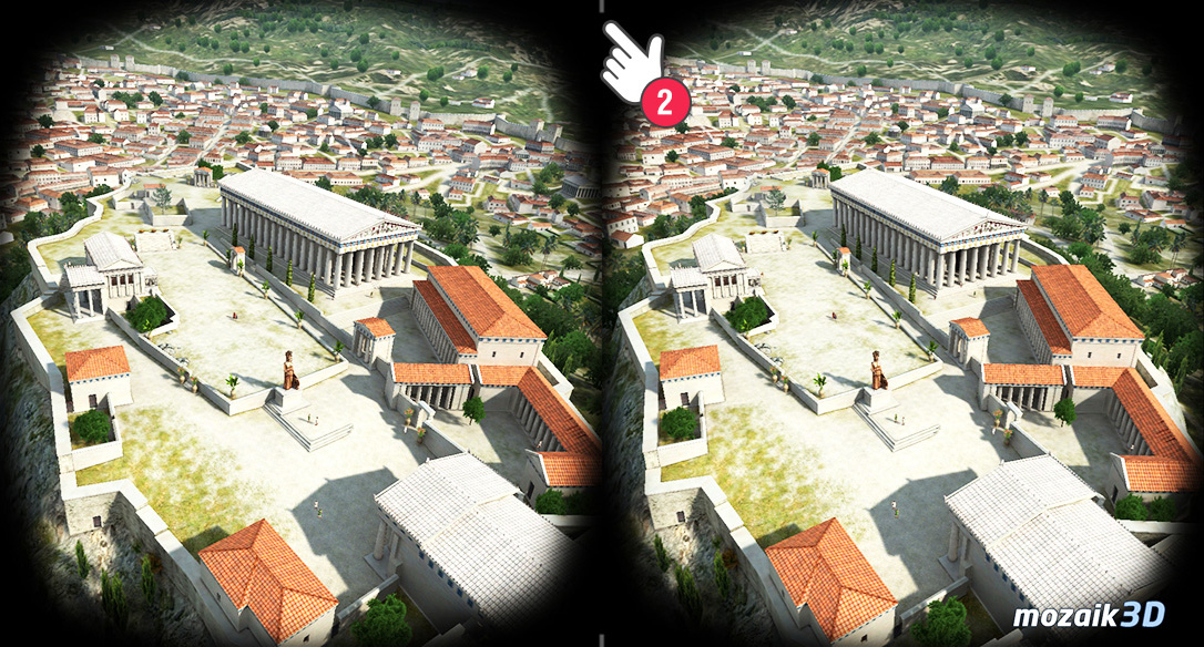 You can take a virtual walk in most 3D scenes with a VR headset. For this, you need a VR headset into which you can place your smartphone, and the mozaik3D app which you can download for free.