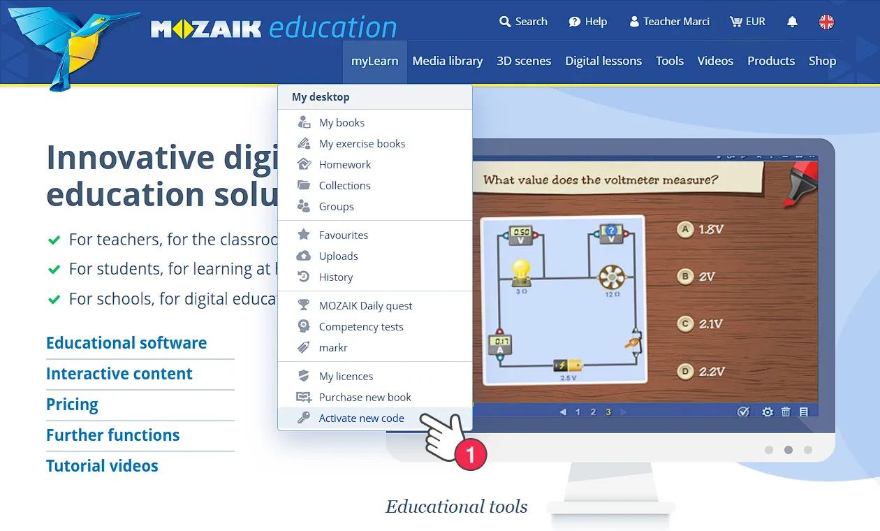 If you have a valid Mozaik TEACHER or Mozaik STUDENT licence code, you need to activate it to get access to all the functions that mozaBook and mozaWeb have to offer.