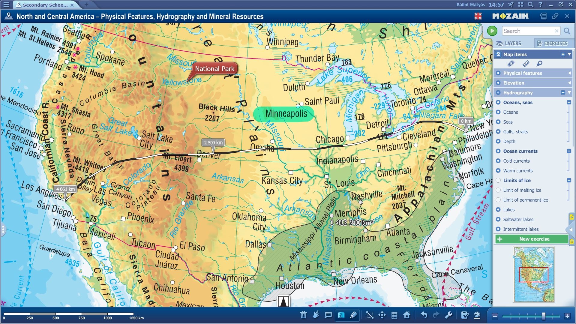 Besides our printed textbooks and digital solutions, we are really proud of our super detailed and fun atlas collection for the subject of Geography. For interactive boards, we have had these maps for a long time in a separate framework program, called mozaMap and you may have already heard about the compact miniMap tool as well. However, it was high time to integrate these maps into our educational presentation software mozaBook to make everything more manageable and smoother in the classroom.First, simply select the map from your shelf, open it up, and check all the possibilities and map variations you can choose from… five continents, demographic views, populations, the environmental state of the Earth, so literally everything you may need in a Geography lesson is at your fingertips. Let’s select North America and see what we can do with the map: