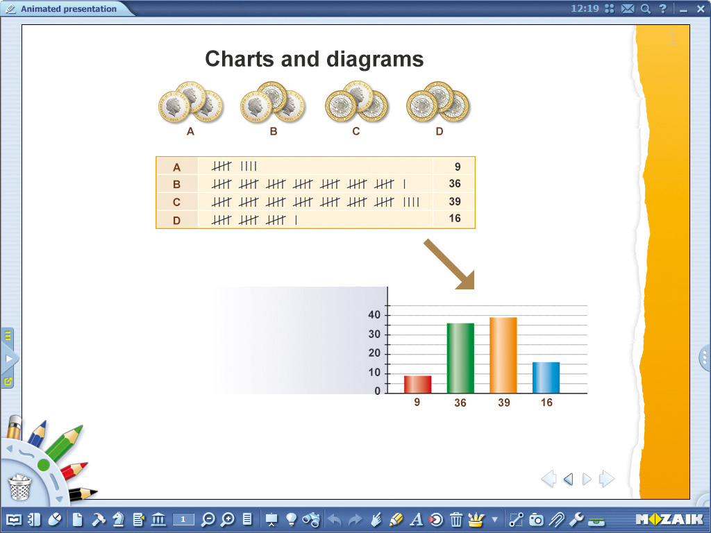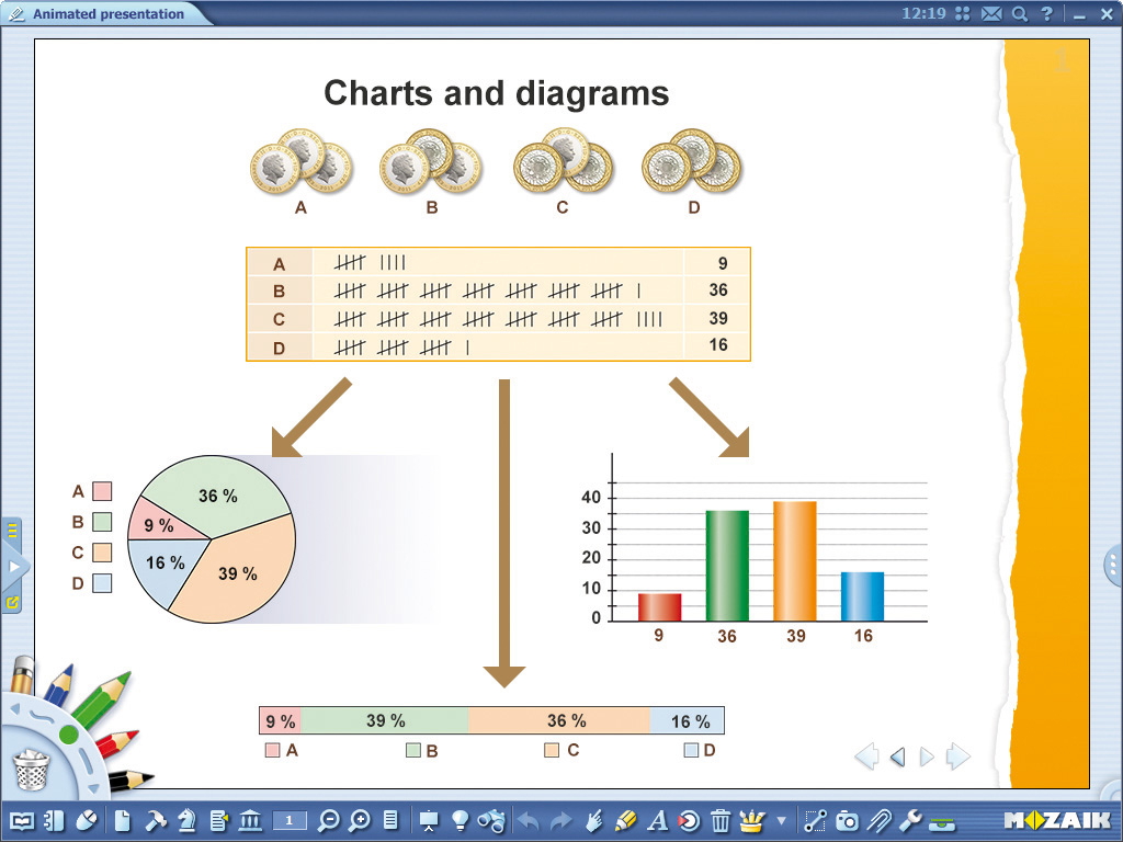 The mozaBook Animation editor is an excellent tool for spectacularly presenting a process or chain of thought and making interesting exercises, maintaining pupils' attention. It is only our imagination which can limit the possibilities, not the available tools or animation opportunities at our disposal.