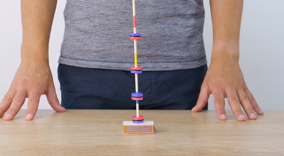 Este experimento simple muestra el fenómeno de la levitación magnética.