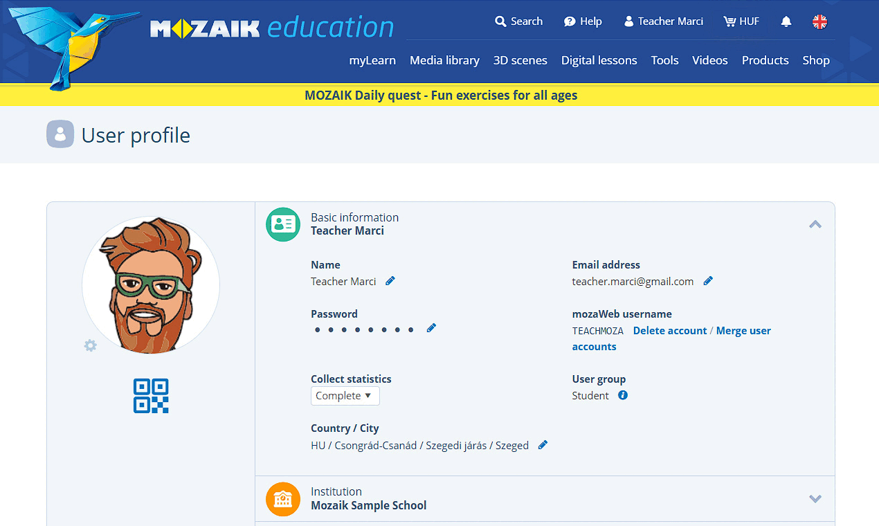 Por favor, ten en cuenta que, al eliminar tu institución (por ejemplo, al cambiar la institución), tu cuenta automáticamente pasará a ser una cuenta de "Alumno".