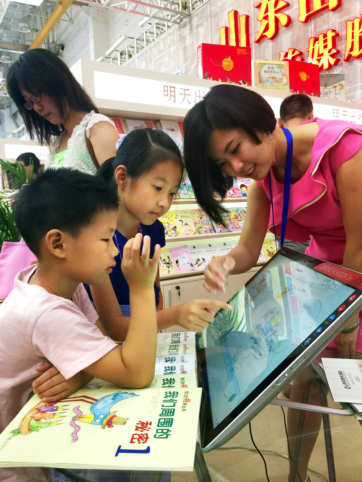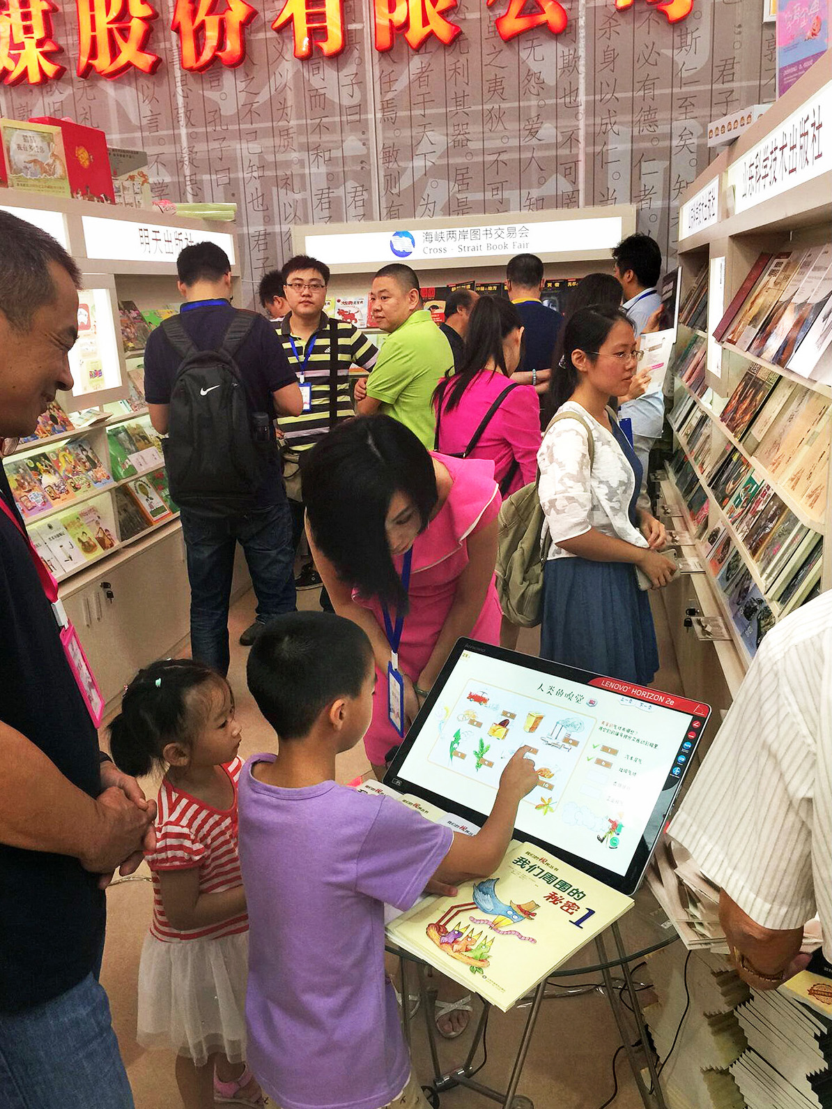 Outdoor big screen displaying mozaBook at Shandong Book City, China.