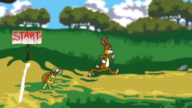 A lebre prepotente desafia a tartaruga lenta mas inteligente. O resultado é uma grande surpresa.