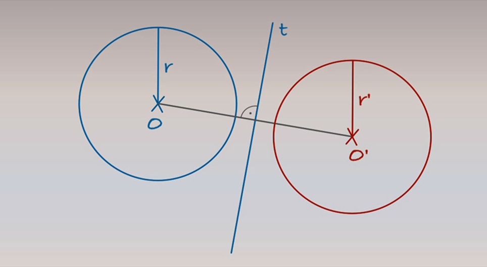 O eixo t e um círculo com centro O e raio r são dados num plano particular. Tracemos a imagem especular do círculo!