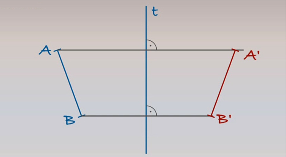 O eixo t e o segmento de linha AB são dados no plano. Tracemos a imagem especular do segmento de linha AB através do eixo t!