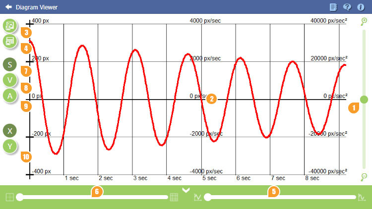 Características do objeto (deslocamento s(t), velocidade v(t)) serão exibidos no painel do diagrama. |