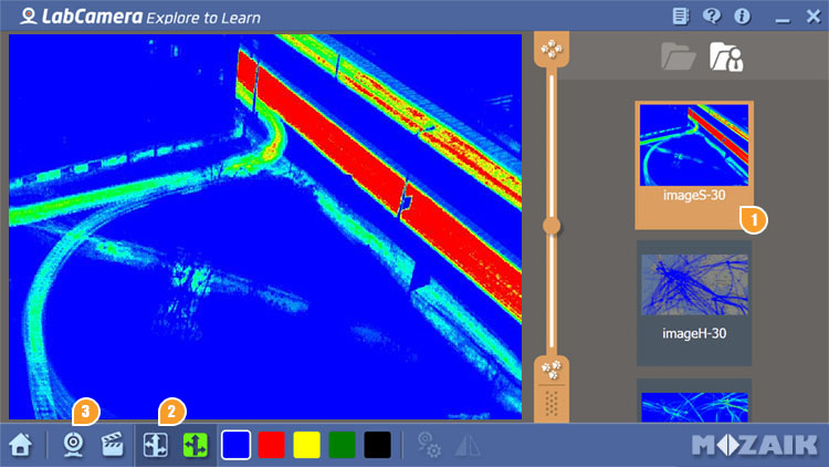Sua imagem gravada será adicionada à lista de miniaturas. O arquivo de imagem será salvo em seu dispositivo de armazenamento externo na pasta “/ LabCamera/Pathfinder”. |